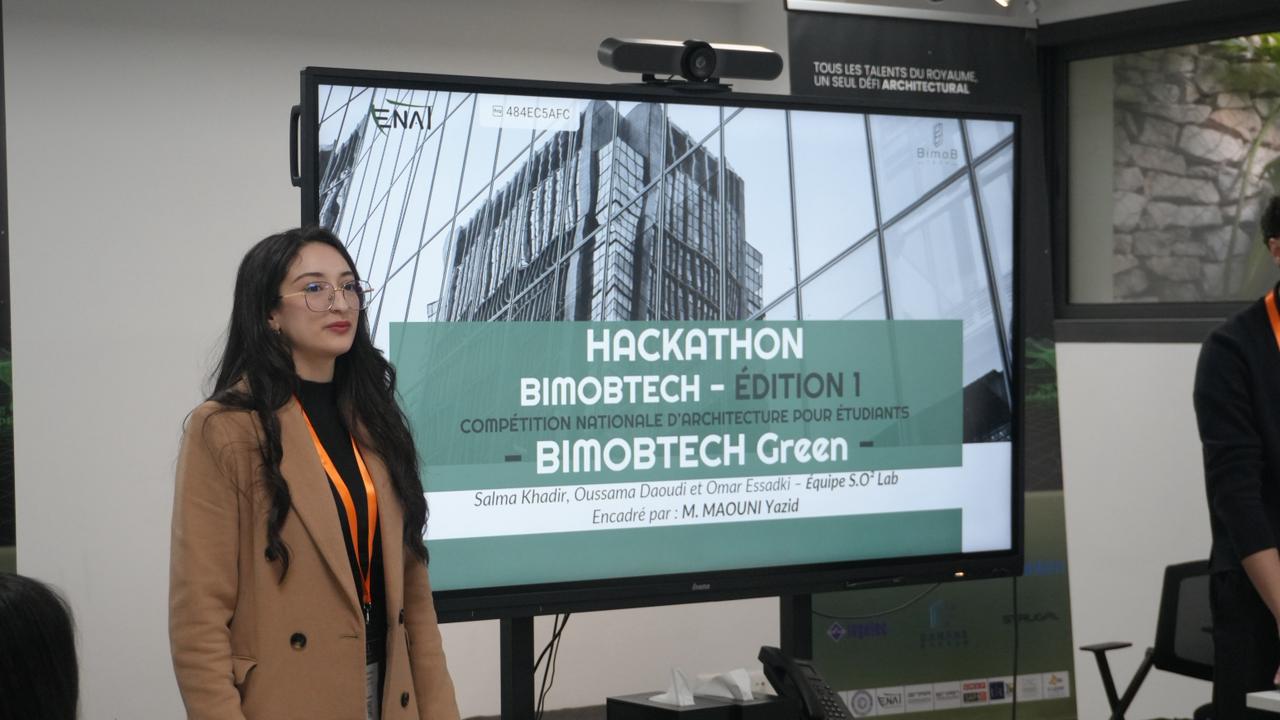 L’École Nationale d’Architecture de Tétouan félicite chaleureusement ses étudiants de 6ᵉ année, Khadir Salma, Daoudi Oussama et Essadki Omar, membres de l’équipe SO² LAB, pour leur participation remarquable à la première édition du Hackathon BimobTech, sous l’encadrement de M. El Maouni Yazid.