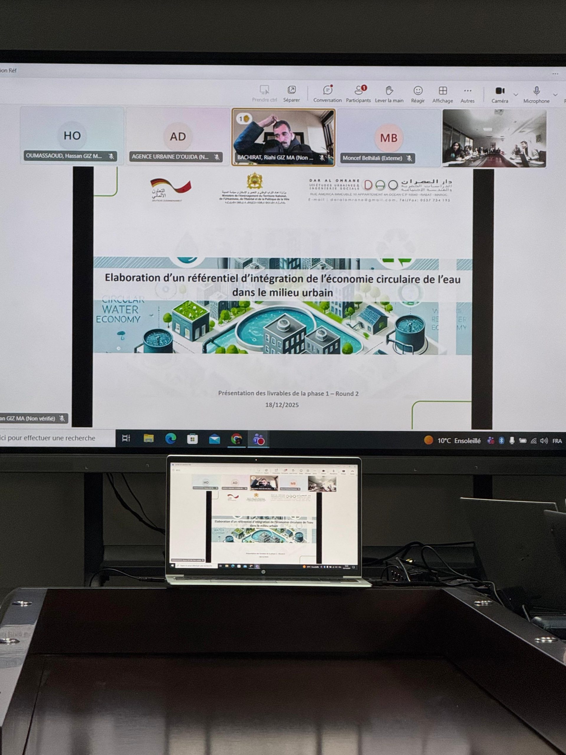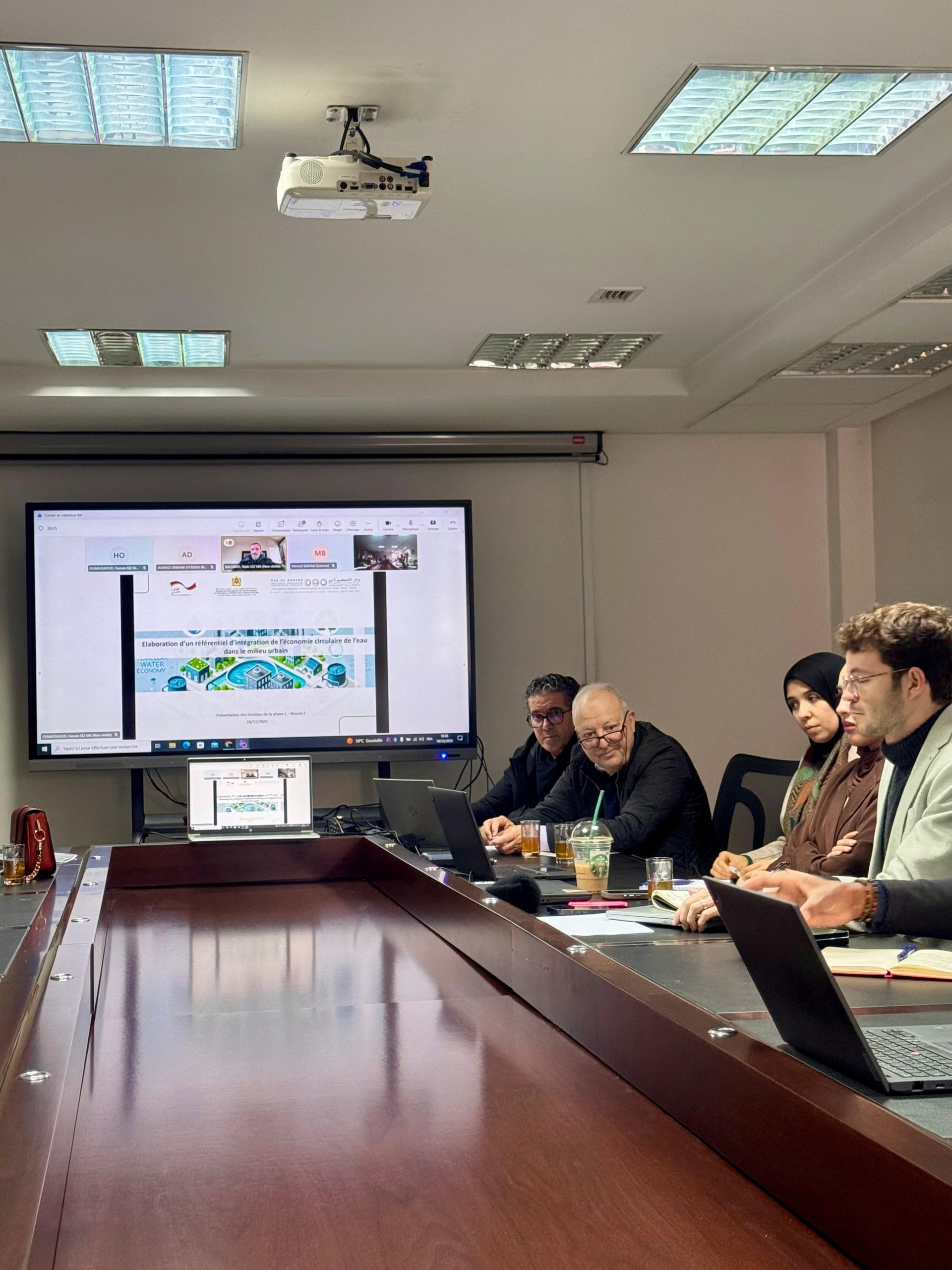 Une réunion du comité technique de suivi du projet « Économie circulaire de l’eau en milieu urbain » s’est tenue le 18 décembre 2025, au siège de la Direction de l’Urbanisme – MATNUHPV à Rabat, en présence des différents acteurs institutionnels et partenaires concernés.